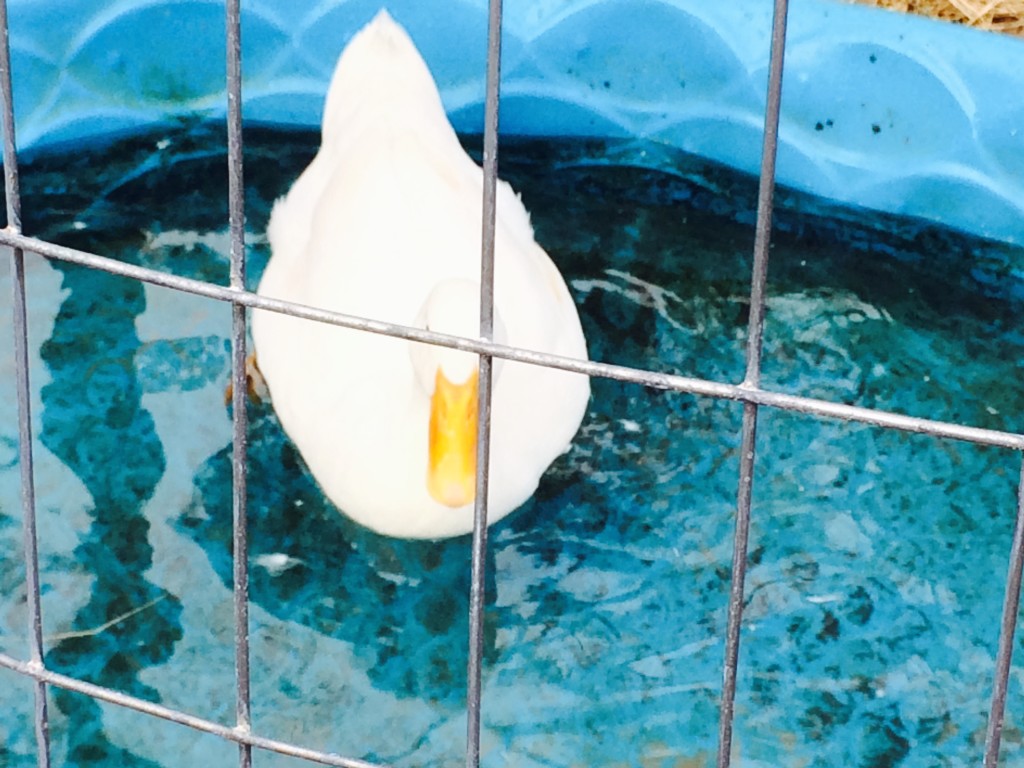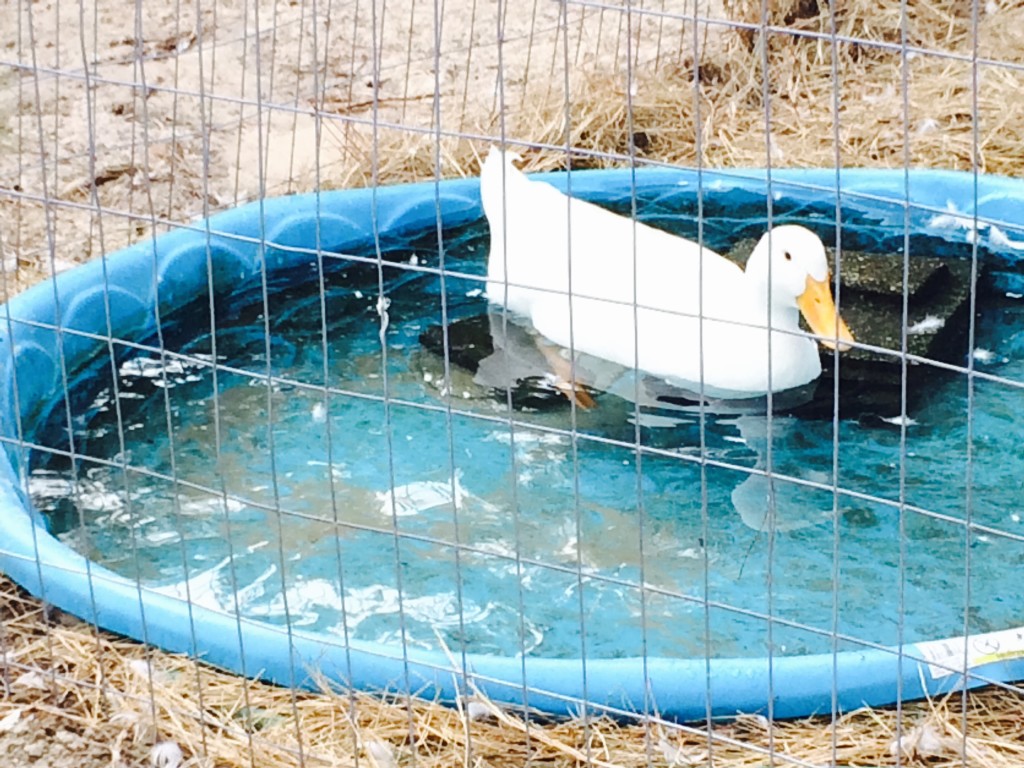 Andy, the Peking Duck, loves to sit in the pool all day…literally all day. He ventures out with the others at afternoon snack time (we call it ‘high tea’, just a scratch and veggie snack). But, after snack he’s right back to the pool, while everyone else heads down to the pond to relax. Well, to each his own…